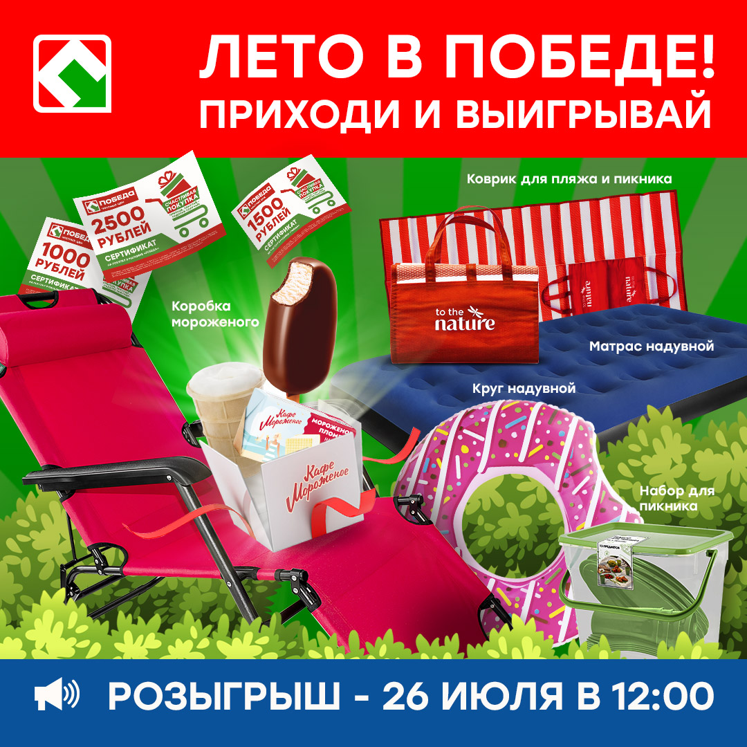 Участвуйте в “Счастливой покупке” и выигрывайте полезные подарки от магазинов ПОБЕДА!